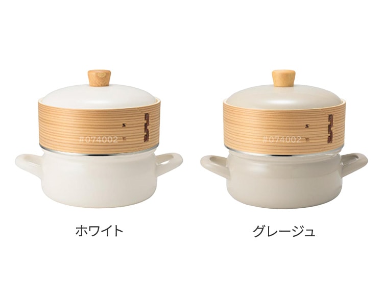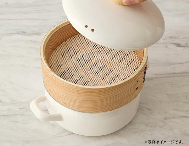 | 材質 | 鍋、蓋:ほうろう用鋼板(ホーロー加工) 蓋のツマミ:天然木 せいろ:天然木、竹 メッシュシート:シリコーンゴム |