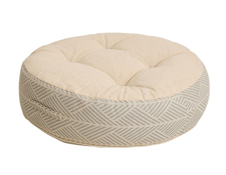 パイピングされた縁は、耐久性アップだけでなくシンプルなフレームレスデザインのアクセントに。裏面もコットン100%生地。