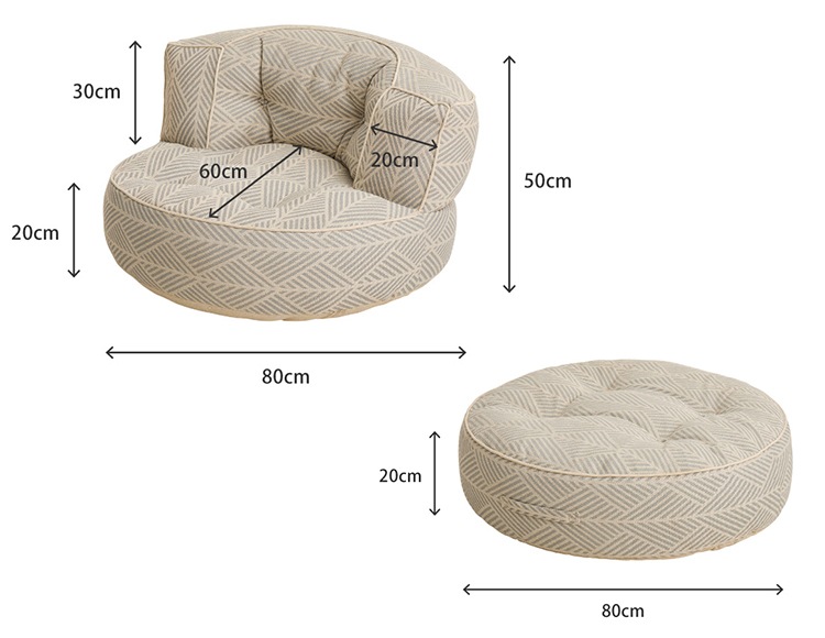 | サイズ(約) | 円形1Pソファ:直径80×50cm 円形オットマン:直径80×20cm |