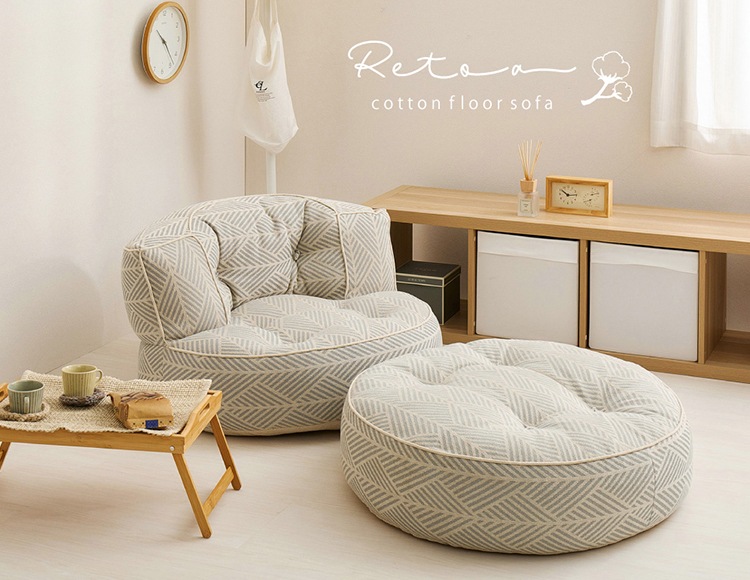 Retoa(レトア)コットンフロアソファとオットマンセット