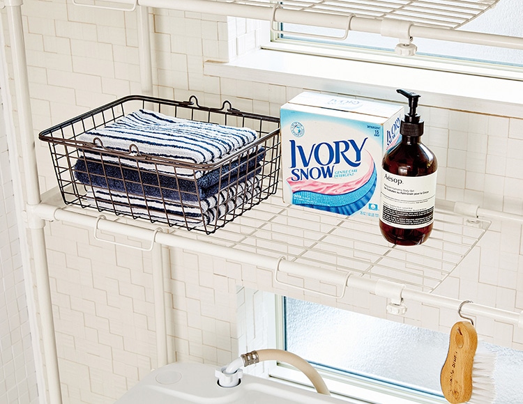 簡単設置で洗濯機の上のデッドスペースを有効活用できるからスッキリ片付きます。