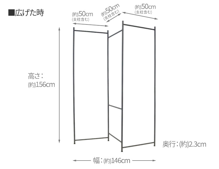 | サイズ(約) | 幅146×奥行2.3×高さ156cm(広げた時)、幅50×奥行4.6×高さ156cm(収納時) |