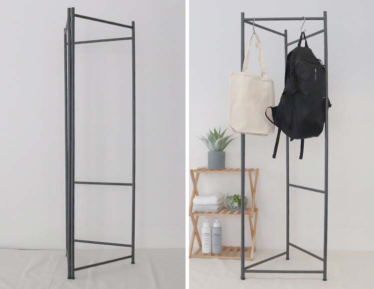 バッグや小物もまとめて掛けられ、使わないときはコンパクト収納